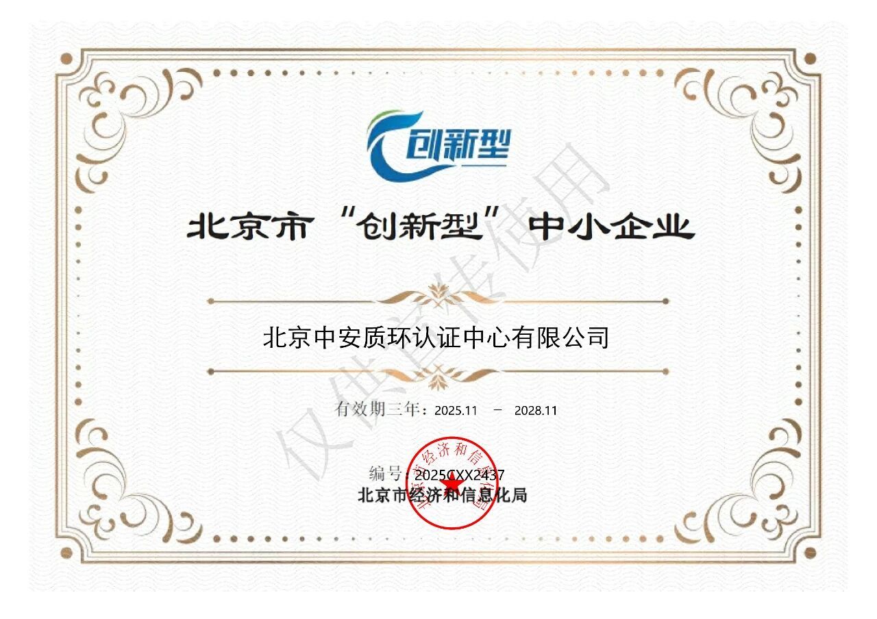 创新驱动,质领未来——近日,经北京市经济和信息化局认定,中安和谐集团旗下北京中安质环认证中心有限公司成功获评北京市 “创新型” 企业!这不仅是对中安质环认证公司在技术创新、服务模式等方面的高度肯定,更是对我们深耕认证领域、持续突破自我的有力见证。