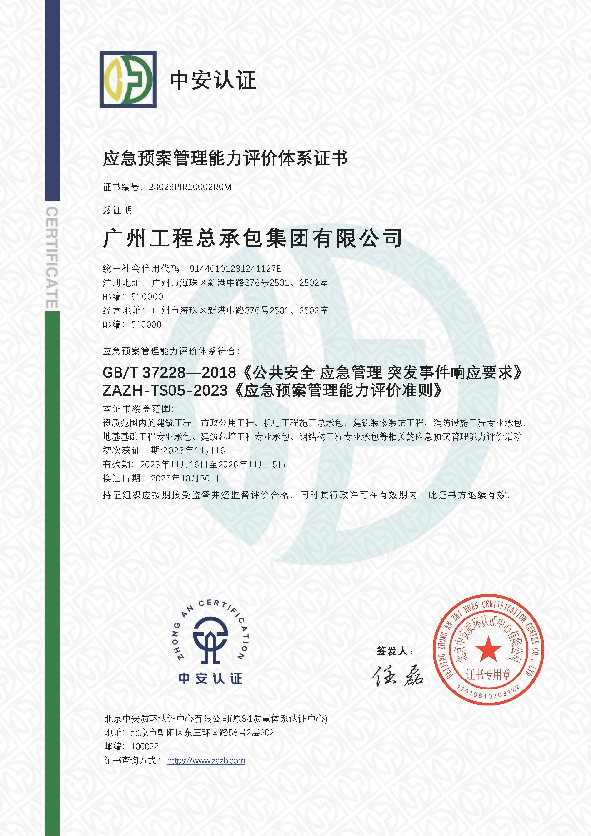 广州工程总承包集团有限公司-应急预案管理能力评价体系证书