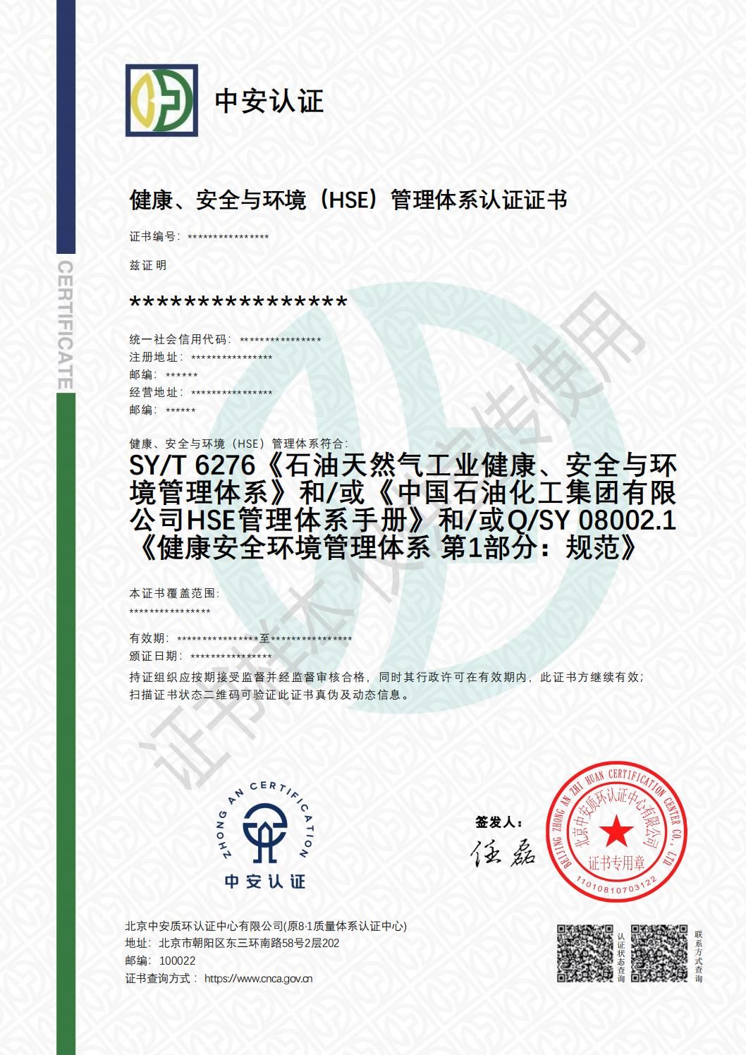 健康、安全与环境管理体系认证(HSE认证)是中国石油化工行业特有的管理体系认证,旨在通过系统化、标准化的管理方法,预防和控制企业在运营中对员工健康、生产安全及环境的影响,实现可持续发展目标。