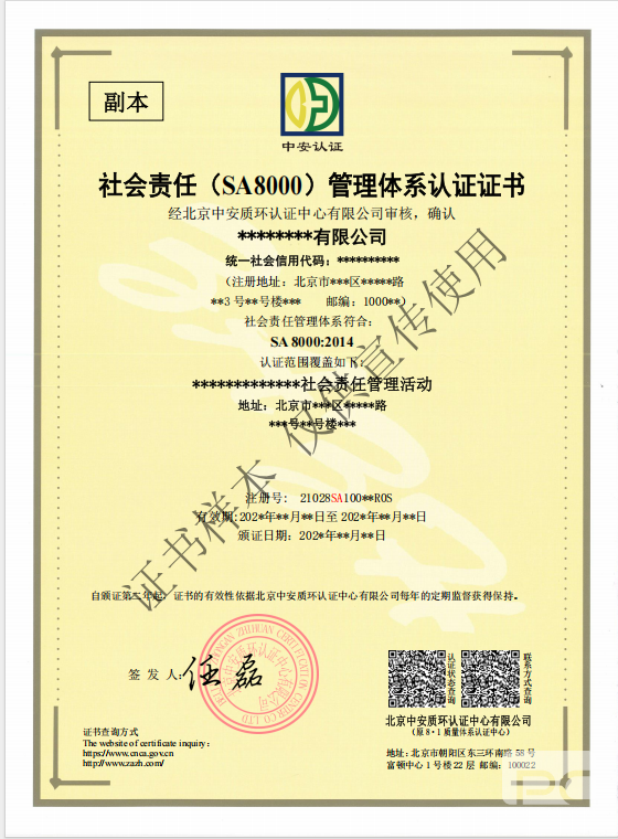 SA8000(Social Accountability 8000)是全球广泛认可的社会责任国际标准,由社会责任国际组织(SAI)发布,旨在通过规范企业劳工权益保护行为,推动工作条件的改善。其核心是保障员工基本人权,涵盖童工、强迫劳动、健康安全、结社自由、歧视、惩戒措施、工作时间、薪酬福利及管理体系九大领域。SA8000是全球首个可认证的社会责任标准,强调企业需通过第三方审核证明其符合国际劳工权益要求,适用于制造业、服务业等劳动密集型行业。