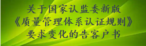 关于国家认监委新版《质量管理体系认证规则》要求变化的告客户书
